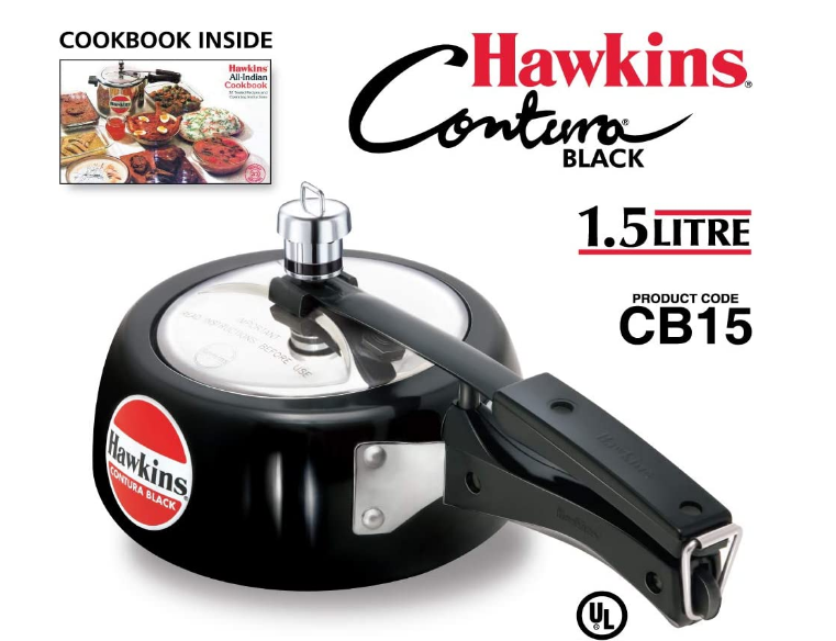 1- Hawkins CB15 Hard Anodised Pressure Cooker, 1.5-Liter, Contura Black