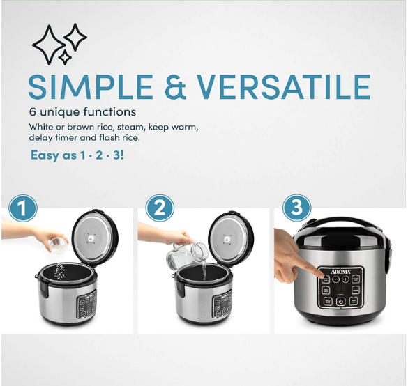 2-   Aroma Housewares ARC-914SBD Digital Cool-Touch Rice Grain Cooker and Food Steamer, Stainless, Silver, 4-Cup (Uncooked) / 8-Cup (Cooked)